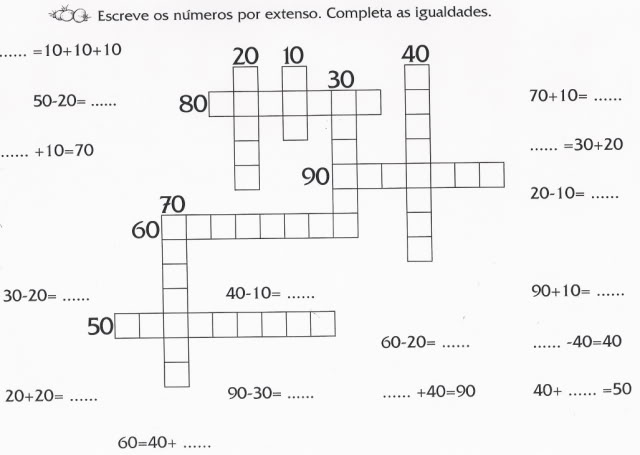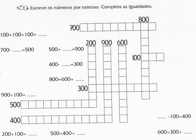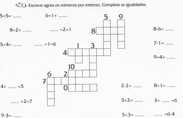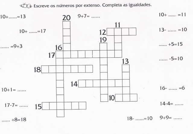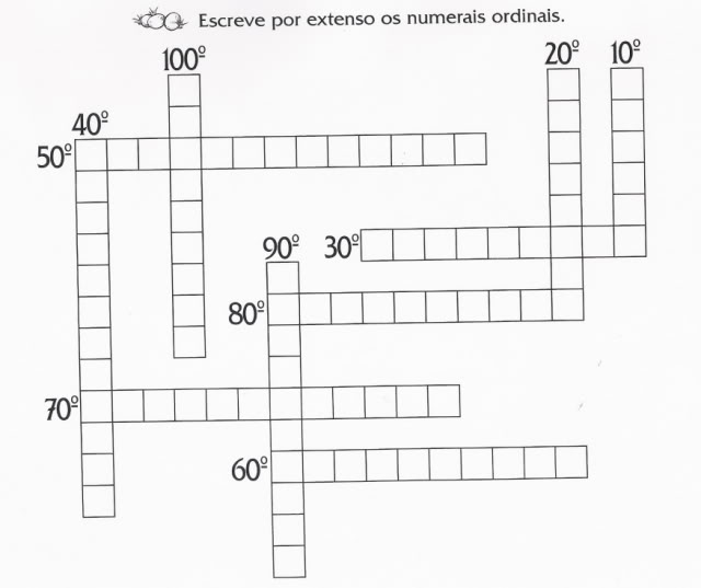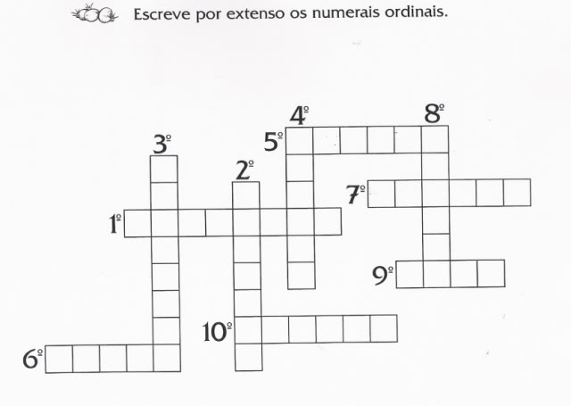 São atividades de palavras cruzadas que ensinam aos alunos a escrever corretamente os numerais cardinais e ordinais e os ajudam também com cálculos simples como podem ser vistos a seguir.